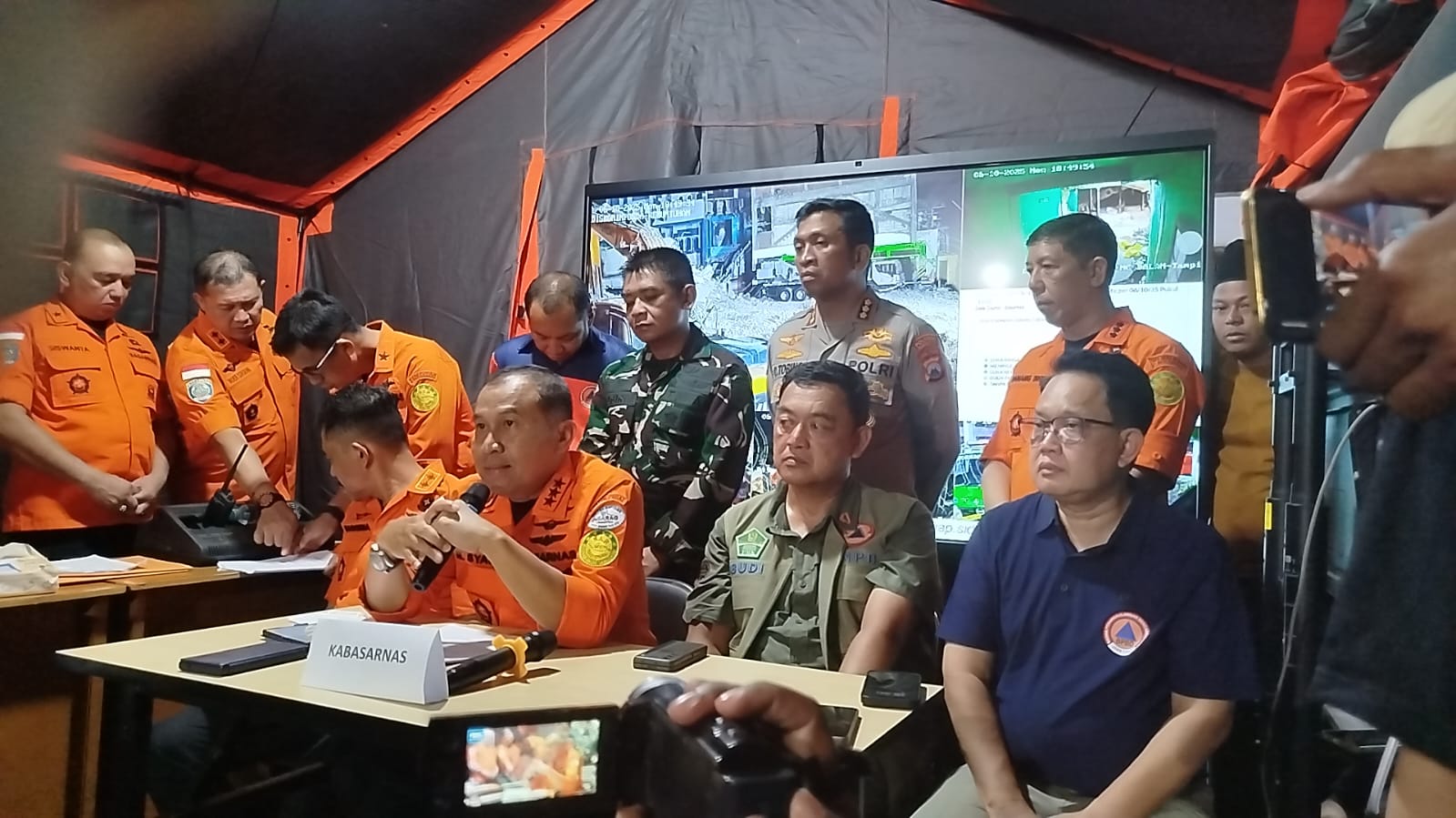 Kepala Basarnas bersama unsur TNI, Polri, dan BNPB memimpin rapat koordinasi pencarian korban runtuhnya mushola Ponpes Al Khoziny di Sidoarjo.